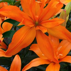 Den har gula stora blommor, och tillhör gruppen asiatiska liljor.