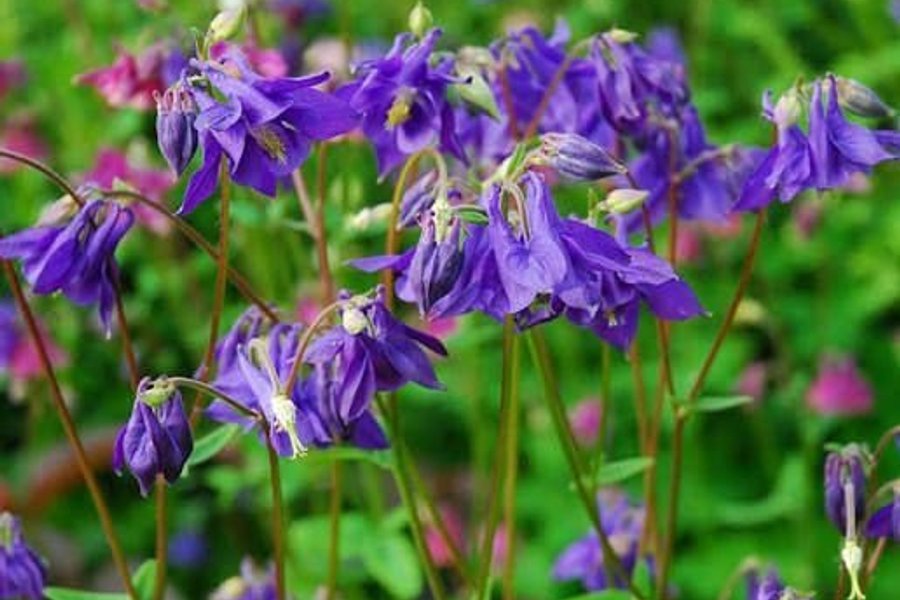 Vacker akleja med lila blommor. Perfekt för trädgården eller balkongen.