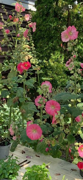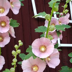 Stockrosor i olika rosa nyanser. Perfekt för trädgården.