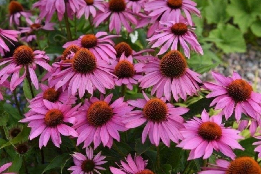 En perenn ört som tillhör familjen korgblommiga växter. Den är känd för sina stora, prästkragelika blommor med rosa till lila kronblad och en framträdande, konformad mitt. Blommorna lockar till sig bin och fjärilar, vilket gör den till ett utmärkt val för en fjärilsträdgård. Purpurrudbeckia blommar från högsommaren till hösten och kan bli upp till 1 meter hög. Den trivs bäst i soliga lägen och väldränerad jord.