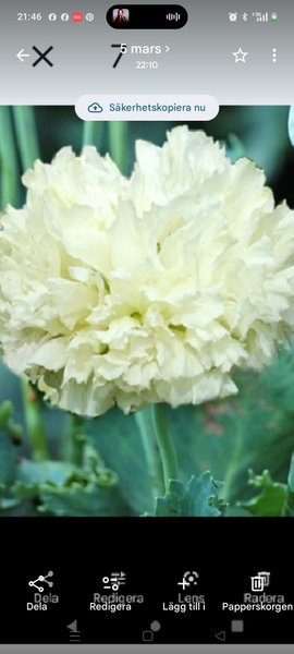 Vallmo 'White Cloud' är en vacker och fyllig blomma med vita, krusiga kronblad. Denna sort är känd för sina stora, fluffiga blommor som ger en elegant touch till trädgården. Blommorna är en fröjd för ögat och passar utmärkt i rabatter eller som snittblommor.