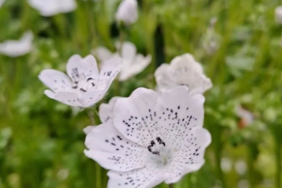 Rara små blommor i snövit nyans med spridda, mörkblå prickar. Enstaka variationer kan förekomma. Den har en tät och matt växtform som passar bra för kanter, lådor och upphängda krukor. Den trivs även i torra miljöer. Avser fem frö.