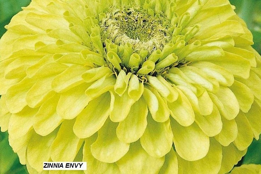 En vacker Zinnia blomma med intensivt gröna blomblad. Perfekt för att lysa upp din trädgård eller balkong. Denna blomma är känd för sin långa blomningstid och lockar till sig fjärilar och bin.
