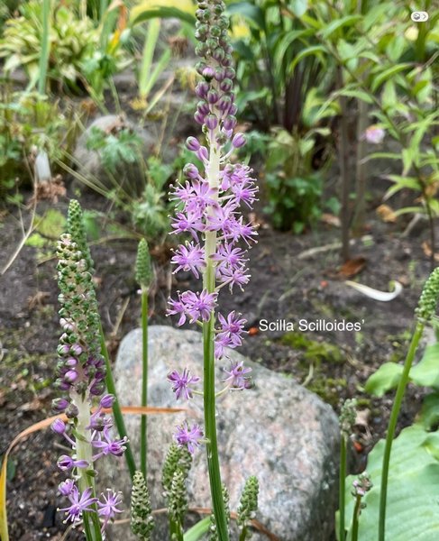Scilla Scilloides är en perenn växt som blommar med lila blommor. Den trivs i soliga till halvskuggiga lägen och föredrar väldränerad jord. Växten är känd för sina spirformade blomställningar.