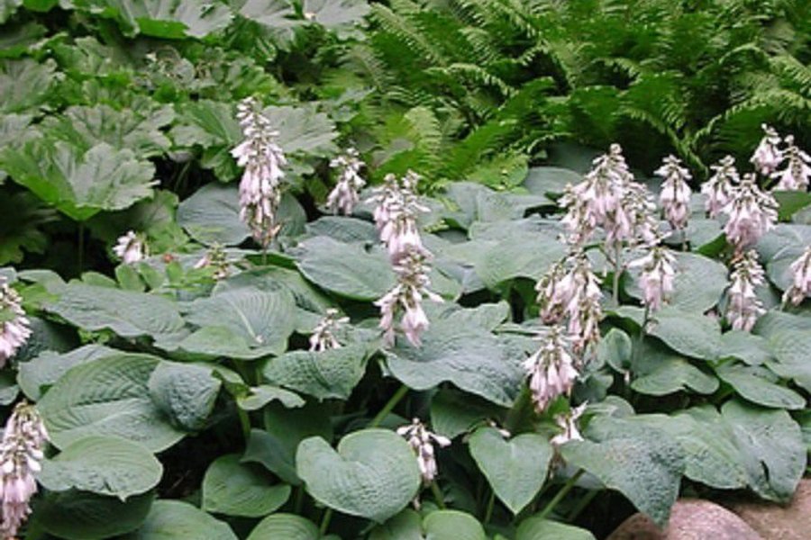 Vacker Hosta med stora blad och eleganta blommor. Perfekt för att skapa en grönskande och avkopplande atmosfär i din trädgård eller på din balkong. Denna lättskötta växt trivs bäst i skuggiga eller halvskuggiga lägen.