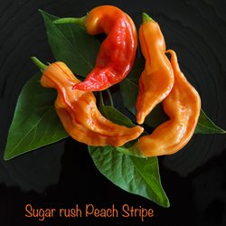 Ur en omgång med fröer till den avlånga röda chilisorten Sugar Rush uppstod en planta med persikofärgade frukter som döptes till Sugar Rush Peach.