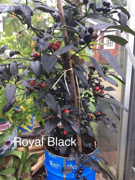 Royal black. Styrka 5000-30000 SHU. Upp till 60 cm hög planta med mörka blad, purpurgrön nyans.frukterna är svarta, övergående till rött. Ursprung USA.