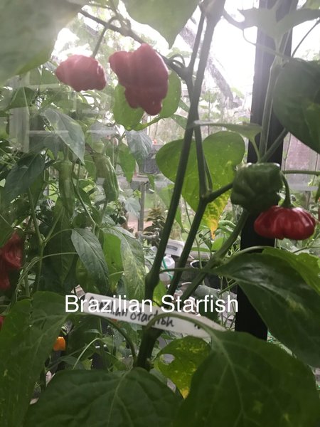 Brazilian Starfish . Styrka 10000-30000 SHU. Röda frukter som mogna. Ursprung Brasilien.