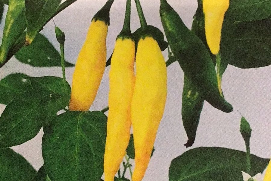 Hot Lemon. Styrka 30000-50000 SHU. Medelhet, ganska tidig chili, som verkligen smakar citron. Plantan blir ca 50 cm hög.