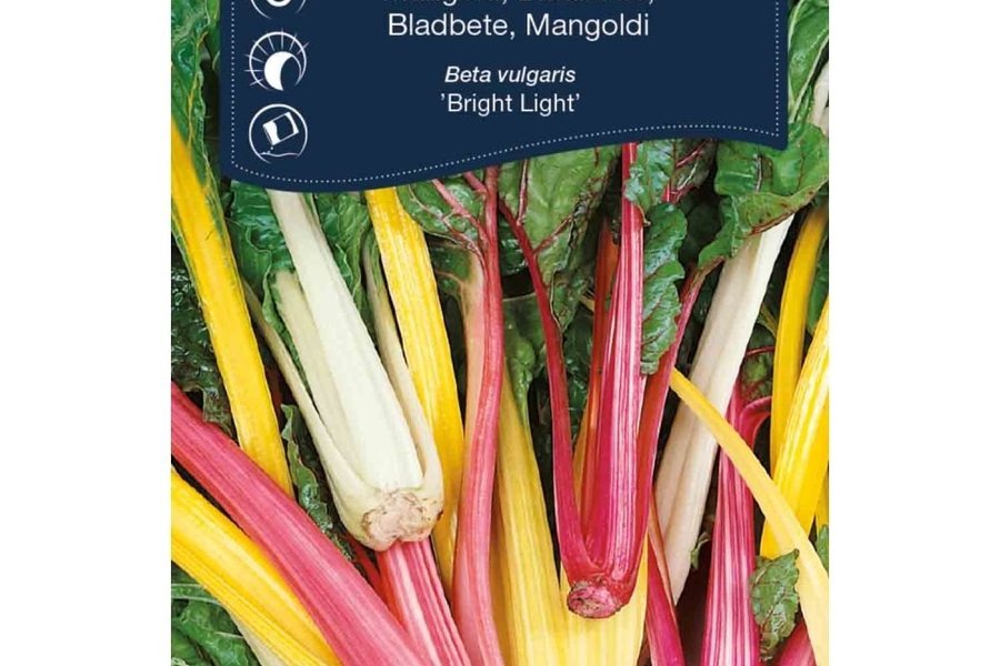 Mangold odlas ofta som ettårig men är en tvåårig växt. Här en blandning från vitt, gult, orange till rött och mörk purpur. Något olika smak för varje färg. Vacker även i rabatten. Stjälkarna kan kokas som sparris, bladen stuvas som spenat. Kan även frysas lätt förvällda. Färgen bibehålles vid lätt kokning.
