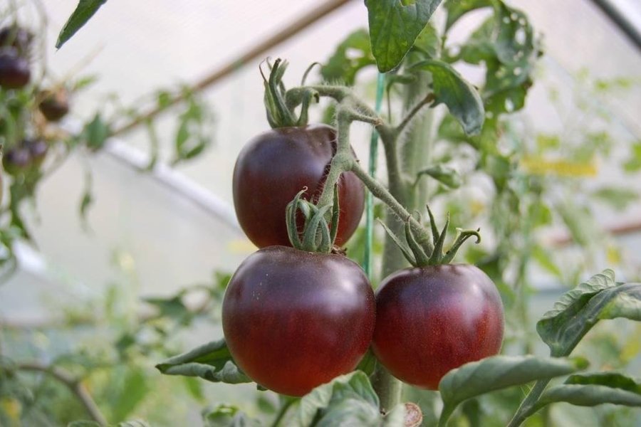 Auktionen gäller 5 frön av en härlig och saftig cocktailtomat som skiftar i rött, brunt, indigo med blå toner. Högväxande som behöver tjuvas.