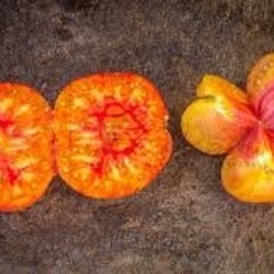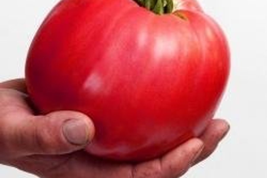 Auktionen gäller 5 frön av en hallonröd bifftomat som blir saftig och god.