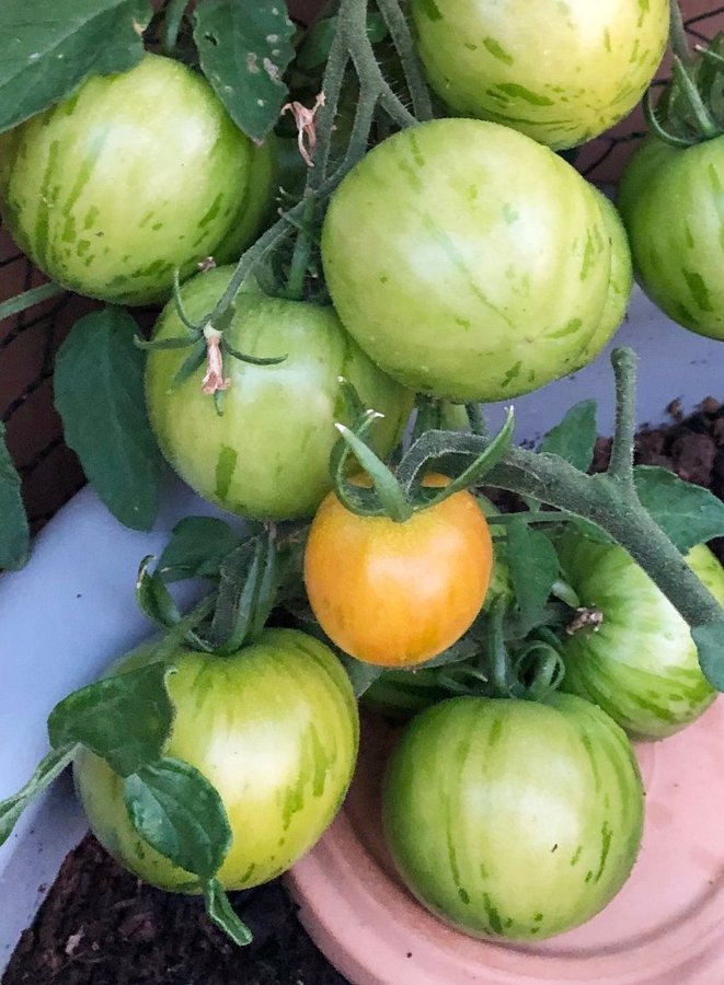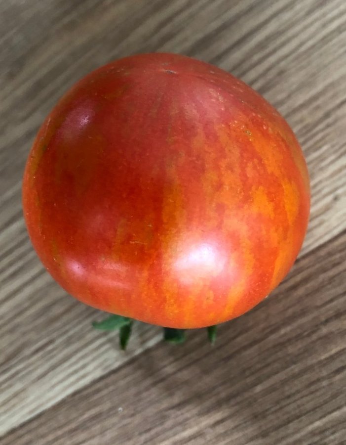 Dekorativa ränder som på omogna tomater är grönt men övergår till orange vid full mognad.