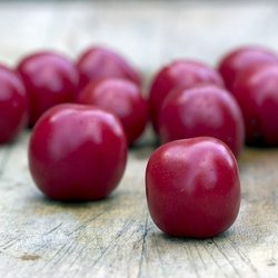 God fönstertomat. Plantan passar bra i liten kruka på fönsterbrädan, blir högst 25 cm hög. Ger rikligt med körsbärsstora röda och söta tomater. Kul att odla och ha tomater inomhus vintertid. Plantan blir större och ger mer skörd sommartid om den kan stå ute.