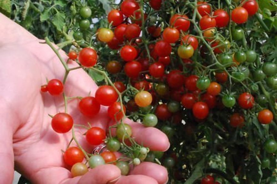 5 frön av röd vinbärstomat. En pytteliten tomat med dekorativa klasar att tex lägga hela i sallader. Söt ljuvlig smak.