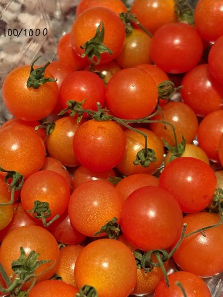 Tomat 100/1000 är en stor busktomat som ger mycket riklig skörd av små röda körsbärstomater. 100/1000 är betydligt mindre i storleken än vanliga körsbärstomater men ger betydligt rikligare skörd som går att plocka allt eftersom under sommaren fram till hösten.