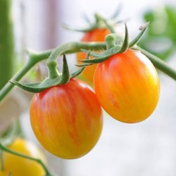 Ger mängder av små, droppformade, orangefärgade frukter. Smaken är söt och fruktig. Plantan är högväxande, behöver stöd och tjuvas.