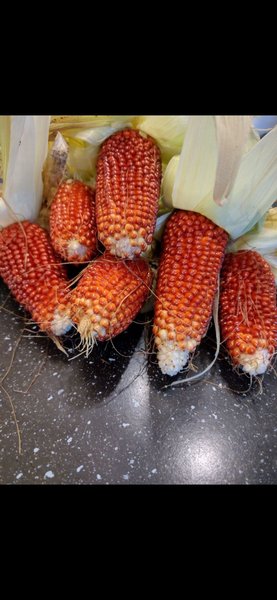 Varje planta ger 2-3 majskolvar som blir härligt röda som jordgubbar. Hela kolven torkas och majsen kan sen poppas eller så kan hela kolven används som dekoration.