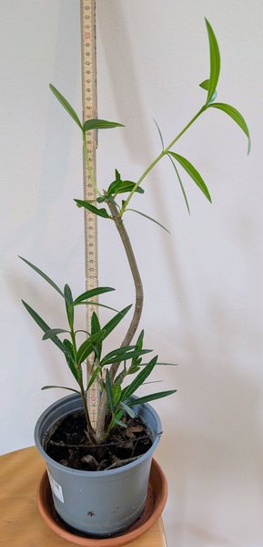 Rotad stickling av Nerium oleander. Plantan är ca 50 cm. Utvecklar dubbla (fyllda), rosa blommor.