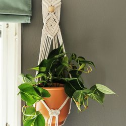 Vacker handgjord makramé ampel för att hänga inomhus krukväxter och skapa gröna och trivsam hörnet i din inomhusmiljö och ge bohemiska touch i inredning *