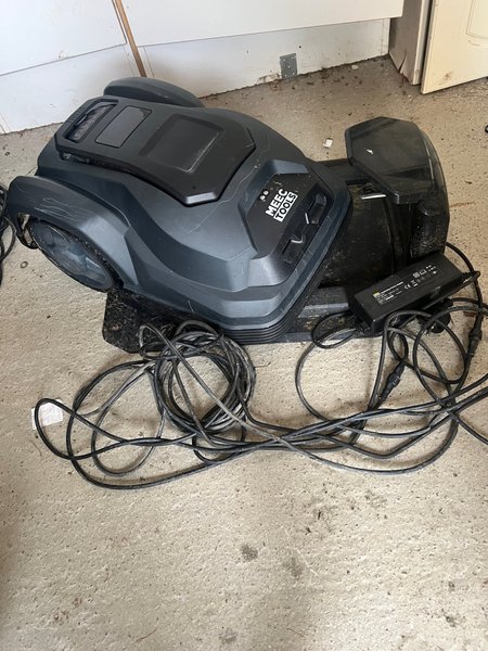 Robotgräsklippare från Meec Tools. Laddare och kablar medföljer.