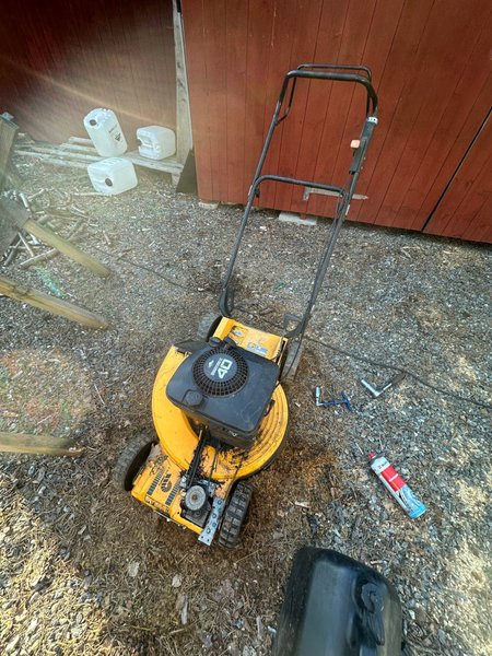 Gräsklippare med Briggs & Stratton 4.0 motor. Klipparen är gul och svart.
