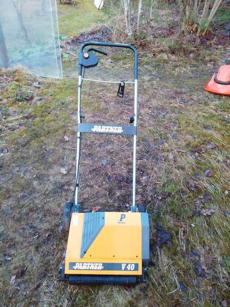 Maskinen skär med ett flertal roterande knivar i gräsmattan vilket gör att luft kan tränga ner och mattan föryngras.