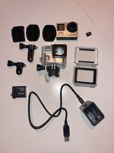 GoPro HERO4 Silver actionkamera med tillbehör.