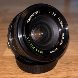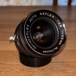 Tamron CF Macro 35-70mm objektiv med Adaptall 2-fattning. Objektivet har bländarinställningar från 3.5 till 32 och en närgräns på 0.25 meter. Brännvidden är 35-70mm.