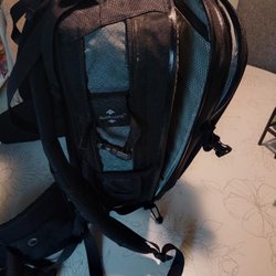 En rem för bröstremmen är lite luddig, sista bilden, samt resårband på axelbanden är lite uttänjda efter användning, se bild fyra