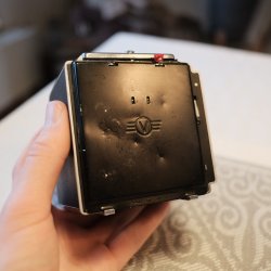 Här har vi en blixt från Minolta. Fungerar. Använder sig av fyra AA-batterier