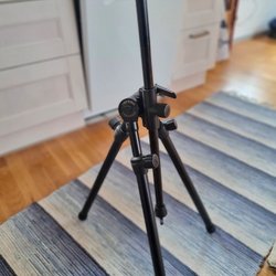 Säljer ett kamerastativ i bra skick. Stativet är justerbart i höjd och har ett vattenpass för att säkerställa raka bilder. Perfekt för både foto och video.