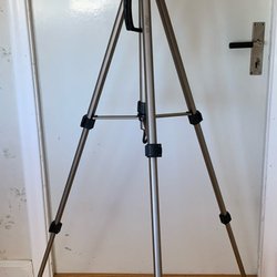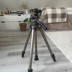 Ett kamerastativ i använt skick. Perfekt för fotografering och filmning. Stativet är justerbart i höjd och har ett vridbart huvud för enkel positionering av kameran.