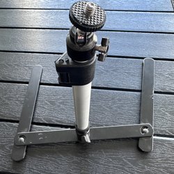 Stativ til kamera. Justerbar højde og vinkel for stabil optagelse. Let at transportere og opsætte.