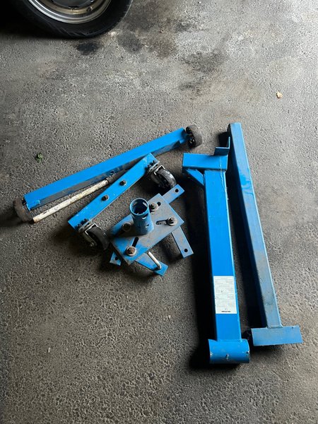 Motorstativ i blå färg. Perfekt för motorrenovering eller liknande projekt.