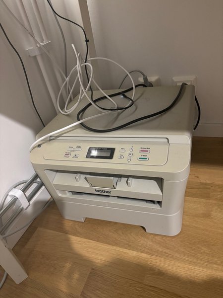 Multifunktionsskrivare från Brother, modell DCP-7055. Kan användas för att skriva ut, scanna och kopiera dokument.