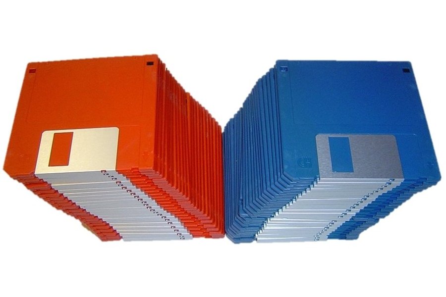 Köper man dessa får man hälften röda(25 st) och hälften blåa(25st) disketter.Produkten är Fabriksny och lösa som på bilden.