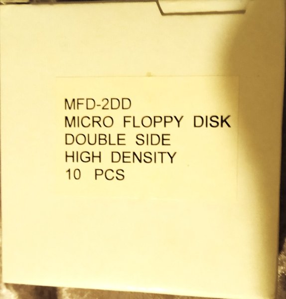 MFD-2DD Micro Floppy Disk Double Side High Density. Förpackningen innehåller 10 stycken disketter.