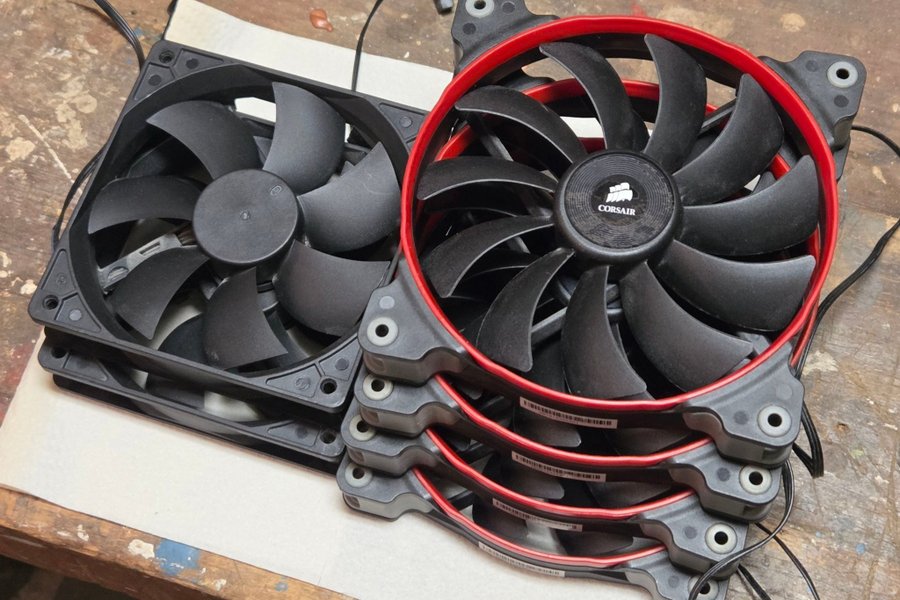 Säljer 6 st chassifläktar från Corsair. De 4 st med röd ring är 140mm, de 2 svarta är 120mm. Alla är med 3-pinskontakt.