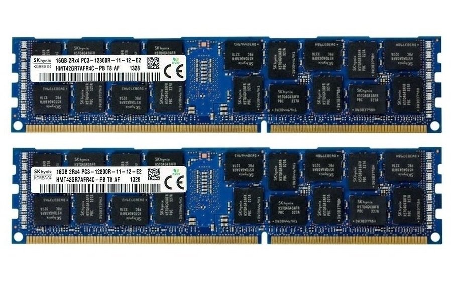 32GB DDR3 2x16GB SK Hynix RDIMM 2Rx4 ECC PC3-12800R 1600MHz Dual Rank x4 RAM Min