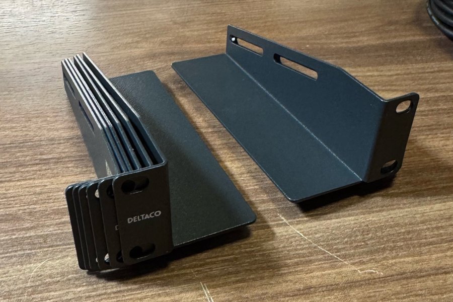 Rackmonteringsvinklar från Deltaco. Passar 10” och 19” rack. 136 mm djupa. Totalt 12 st skenor, 6st för höger och 6st för vänster.