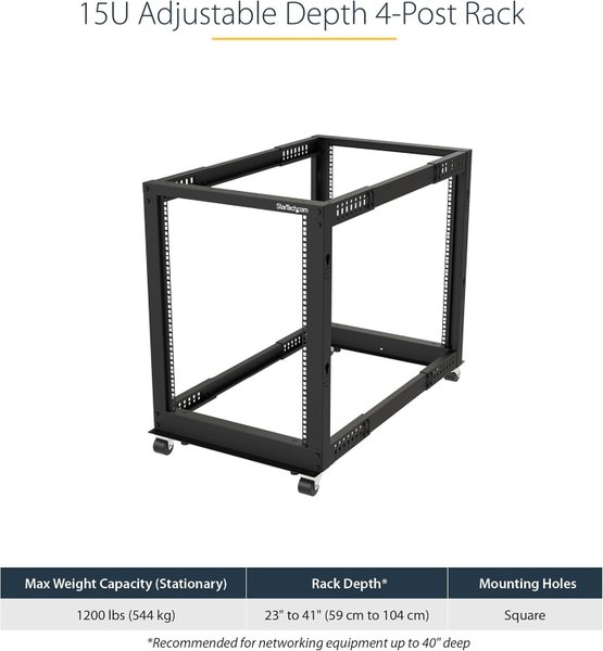 StarTech.com 15U Open Frame Rack – 4-Post – Justerbart Djup