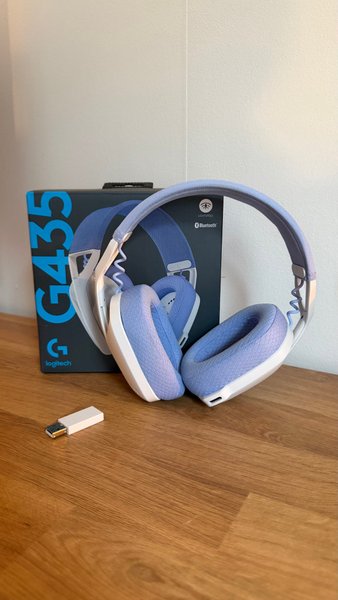 Logitech G435 Lightspeed Bluetooth Gaming Headset. Headsetet är designat för komfort och är lätt. Det ansluts trådlöst via Lightspeed USB-mottagare eller Bluetooth, vilket ger flexibla anslutningsmöjligheter.