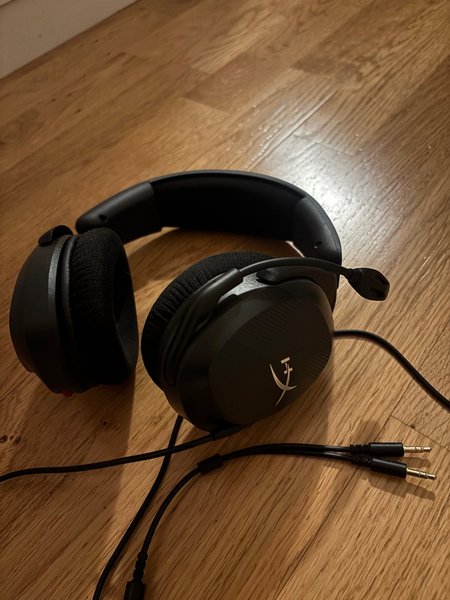 HyperX gaming headset i svart färg. Headsetet är utrustat med en mikrofon och ansluts via två 3.5mm-kontakter.