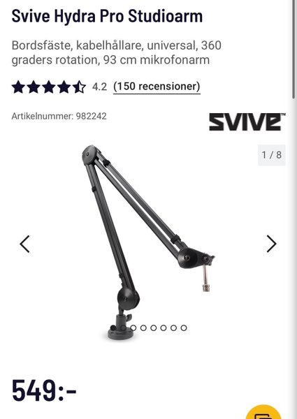 Svive Hydra Pro Studioarm är en mikrofonarm med bordsfäste och kabelhållare. Den är universell och har 360 graders rotation. Mikrofonarmen är 93 cm lång.