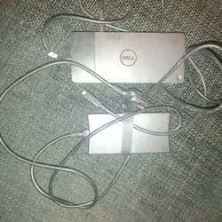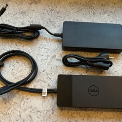 Dell dockningsstation med diverse portar för anslutning av kringutrustning. Se bilder för vilka portar som finns tillgängliga.