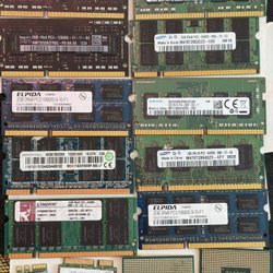 Ett sortiment av RAM-minnen och SSD-enheter säljes. Perfekt för uppgradering eller reparation av datorer. Se bilder för detaljer och specifikationer.