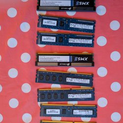 Tre RAM-minnen. Två stycken Micron MT16JTF25664AZ-1G4F1 1629 2GB 2Rx8 PC3-10600U-9-10-B0. Ett Samsung 8GB 2Rx8 PC3-12800U-11-13-B1 M378B1G73EB0-CK0.