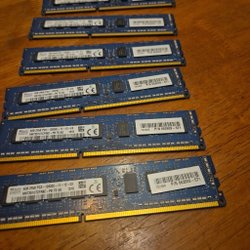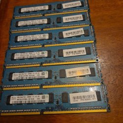 Tre stycken RAM-minnen för stationära datorer. Två av minnena är 4GB DDR2 PC2-5300F och ett är 1GB DDR2 PC2-6400.
