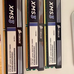 Tre RAM-minnen. Ett Samsung 2GB 2Rx8 PC3-10600U-09-10-B0, ett Micron 2GB 1Rx8 PC3-10600U-9-10-A0 och ett Nanya 2GB 1Rx8 PC3-10600U-9-10-A0.1333.